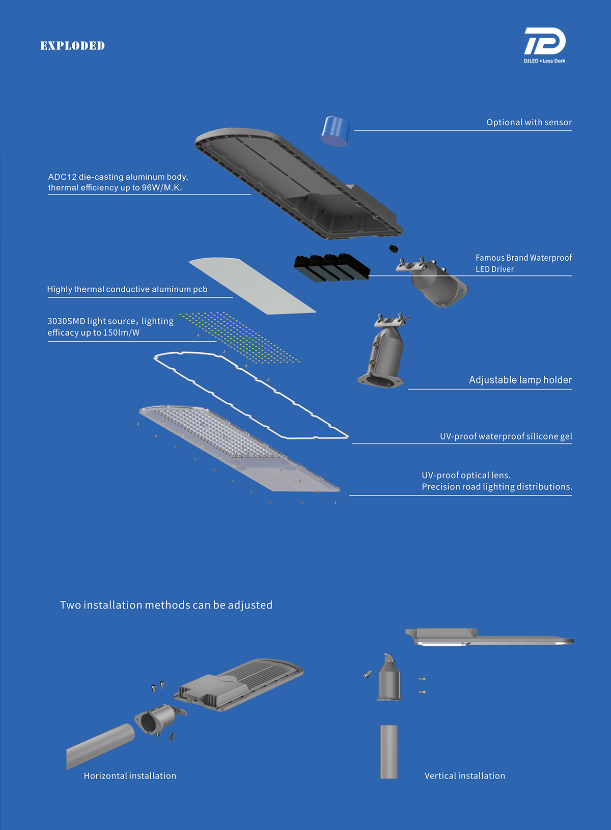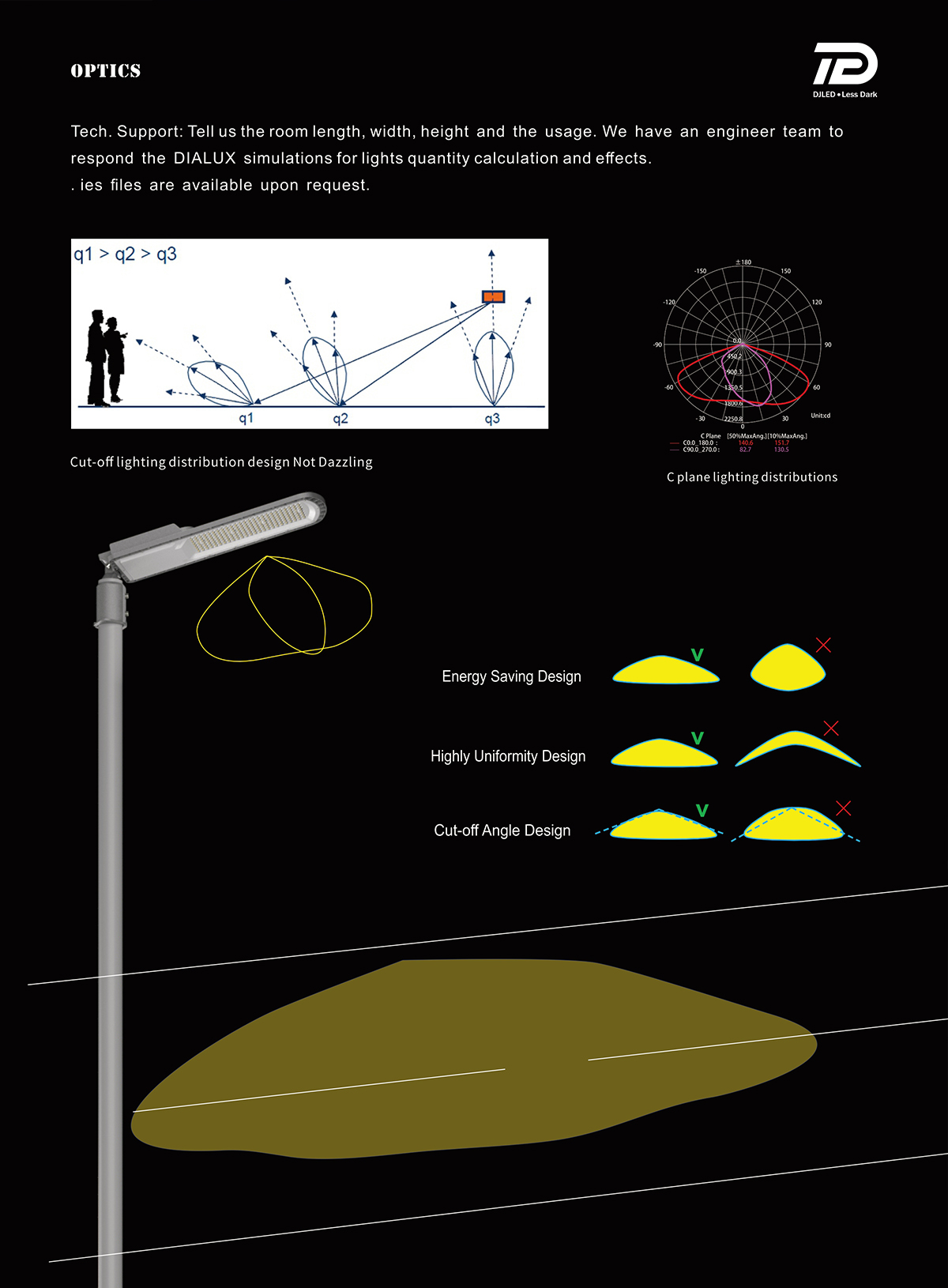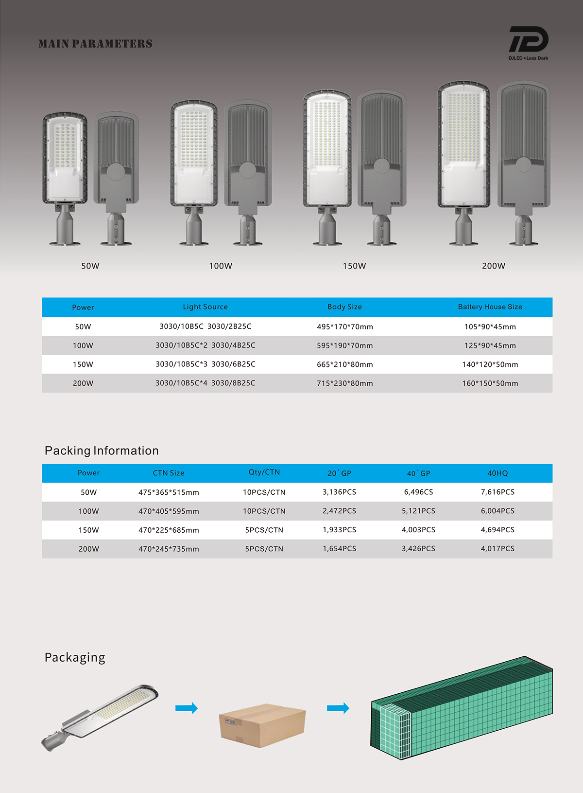 DJLED ECO22 series street lights aim at economy and practicality. The input voltage of AC100-277V can meet the electricity requirements of most countries and regions in the world. 50W-200W, can be used for both village roads and urban roads. Professional street light optical light distribution, can provide Type2, type3 and other beam angles.